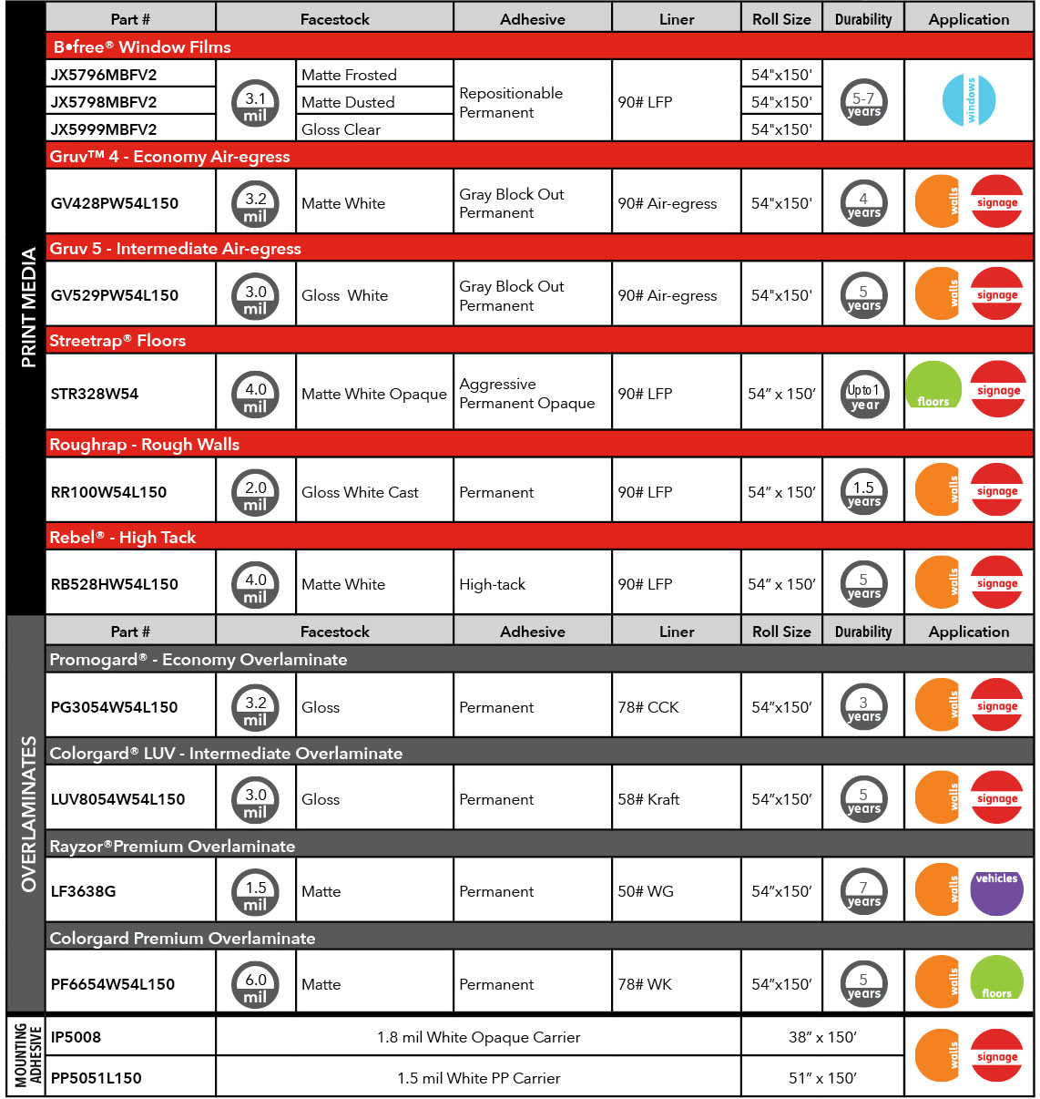 The perfect mix of print media and overlaminates in stock and ready to ship.